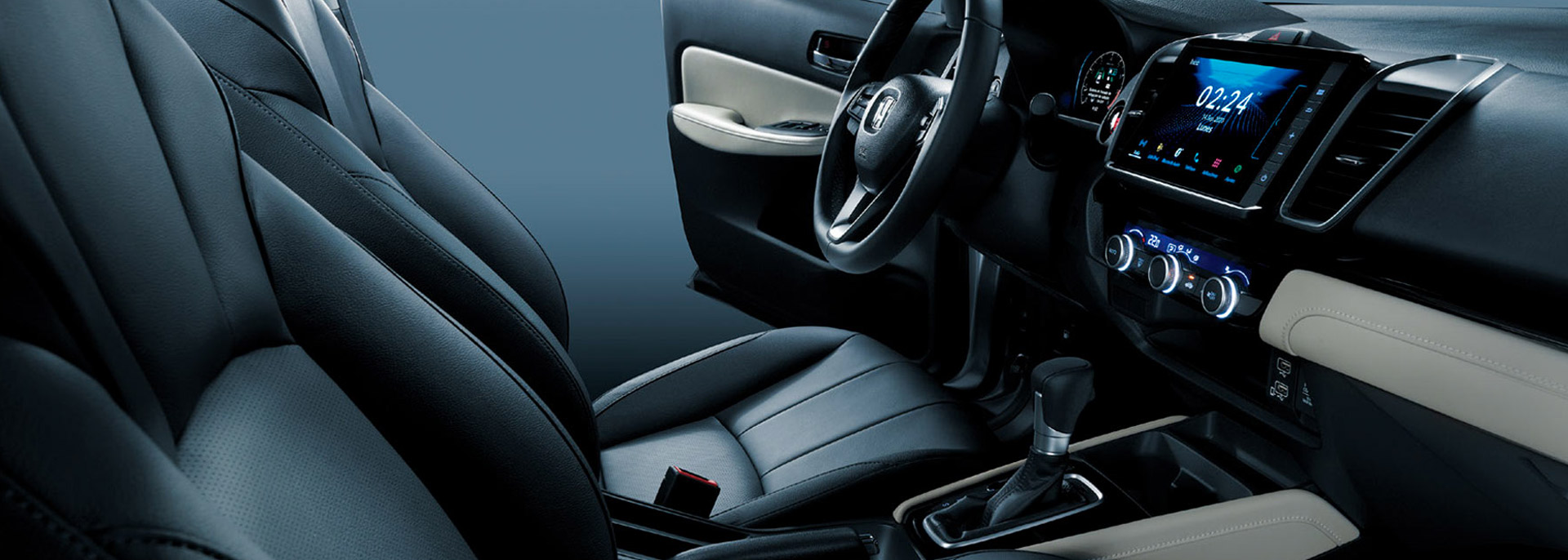 La elegancia de Honda City realza su lujoso interior luciendo cómodos asientos con piel sintética*.